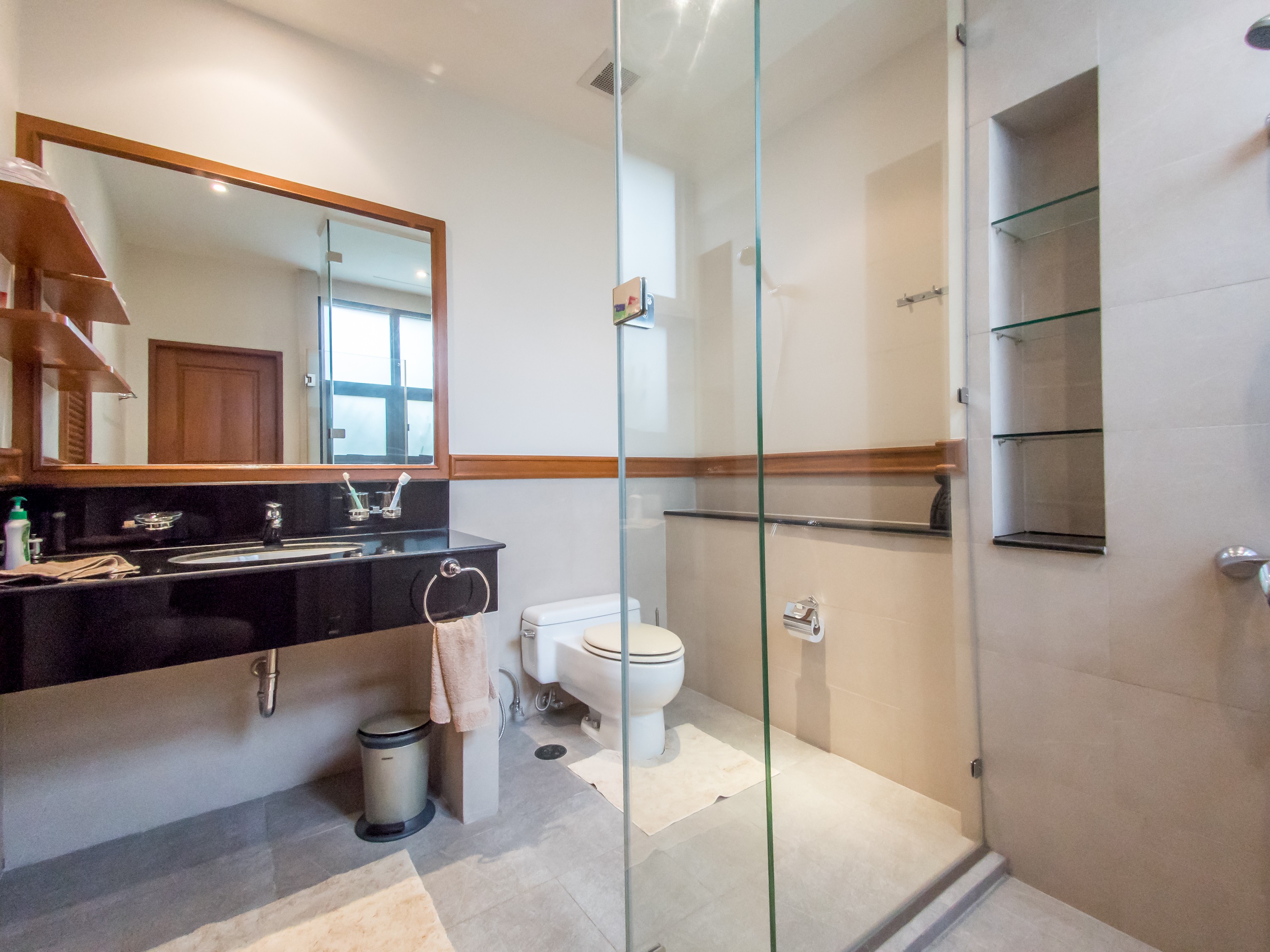 Villa is two Storey, 4 bedrooms with 4 baths and maid's quarters with bathroom. The bedroom downstair has been changed to a study room.