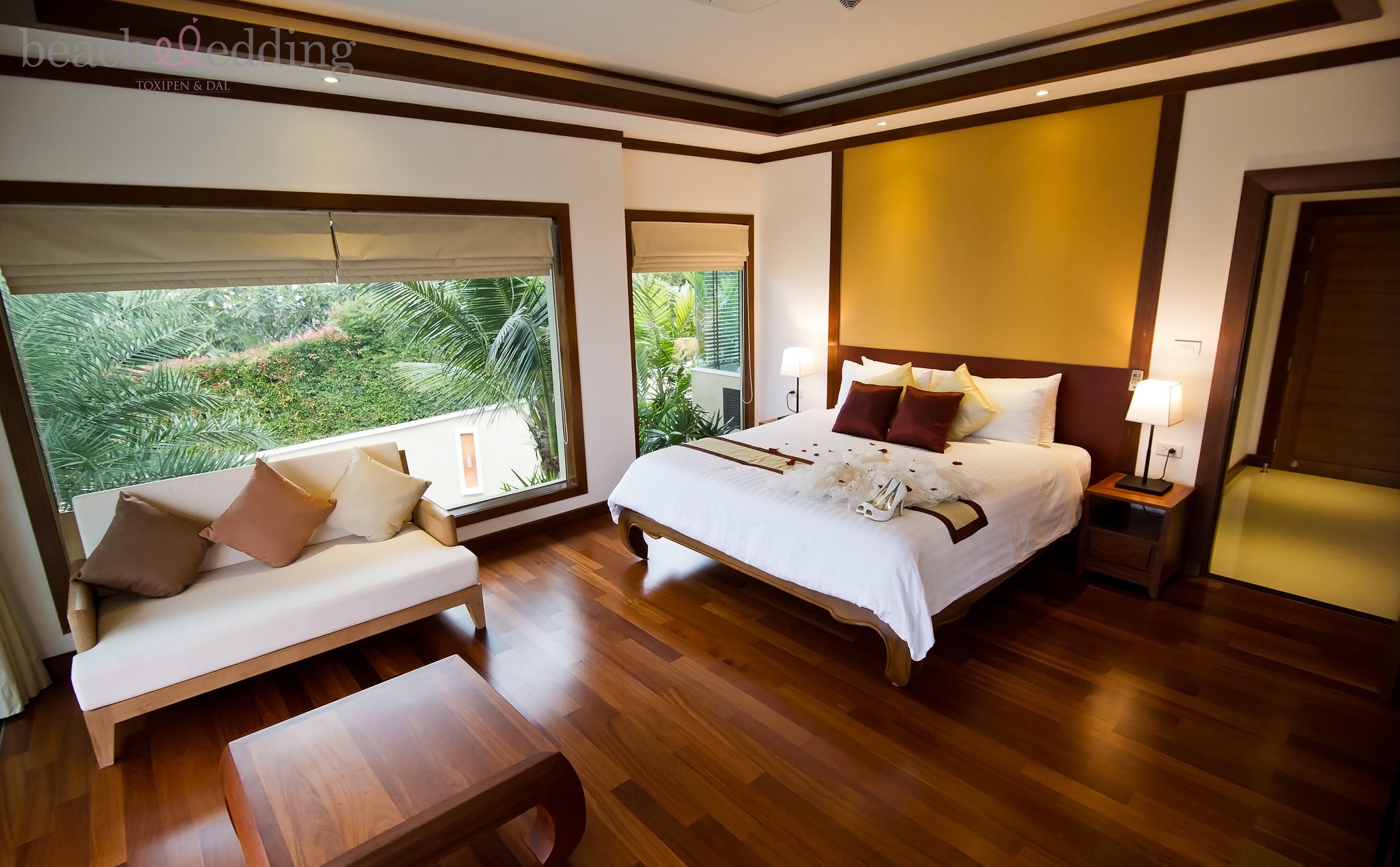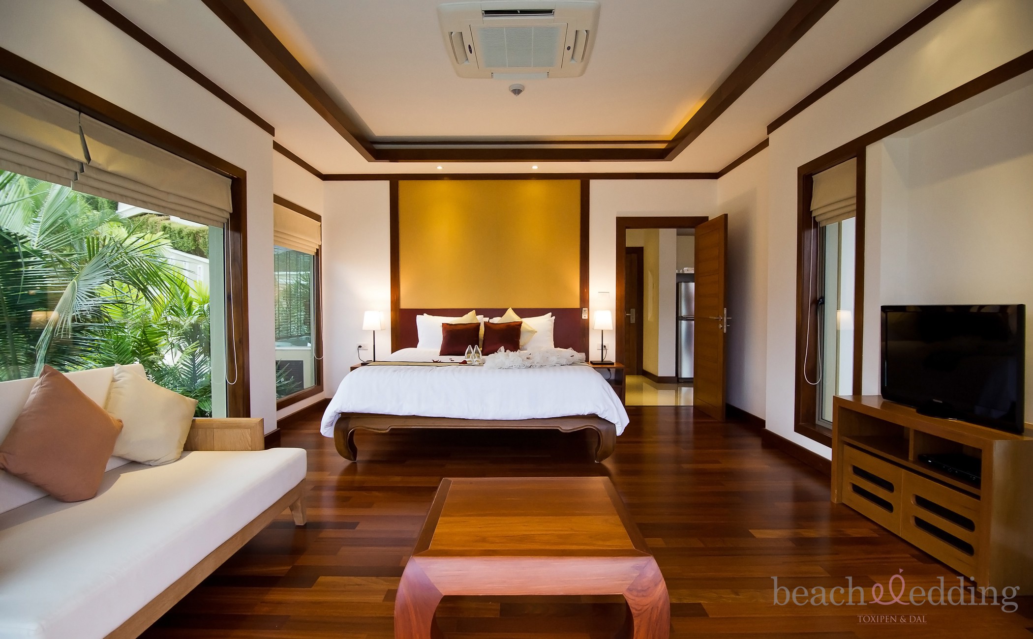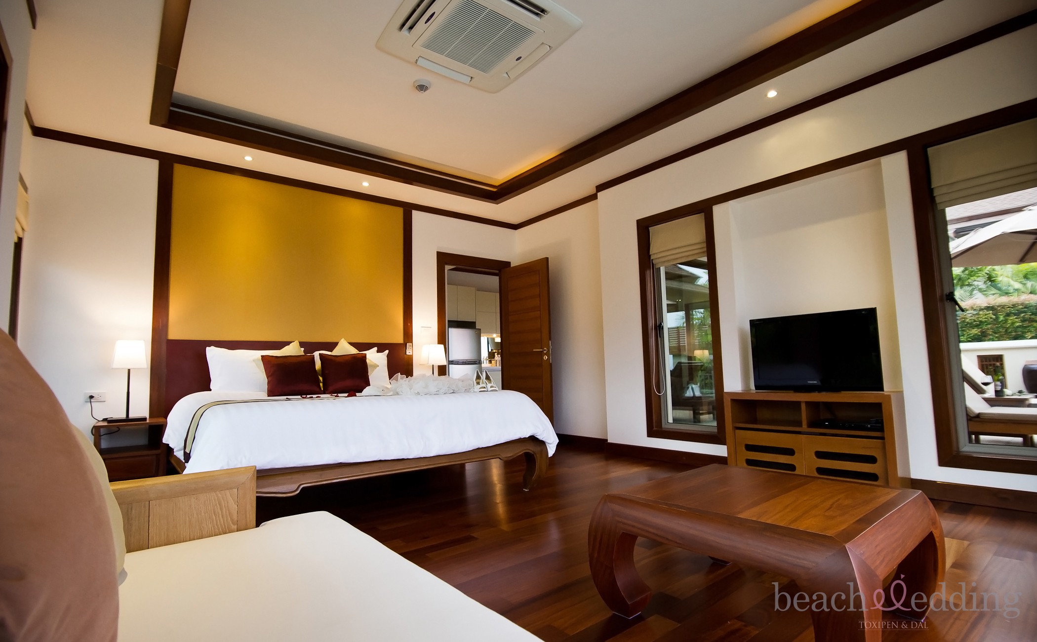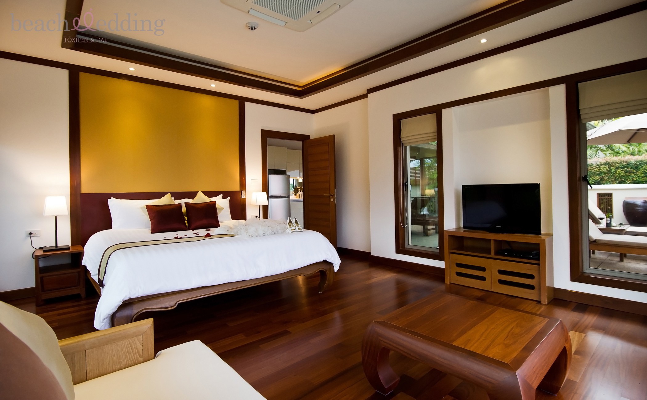 The Villa size is an impressive 180 sq. metres and 1 Bedroom Pool Villa Phuket is specifically designed for two people sharing. The villa is on one level with easy access to the main road and set in luxurious gardens.