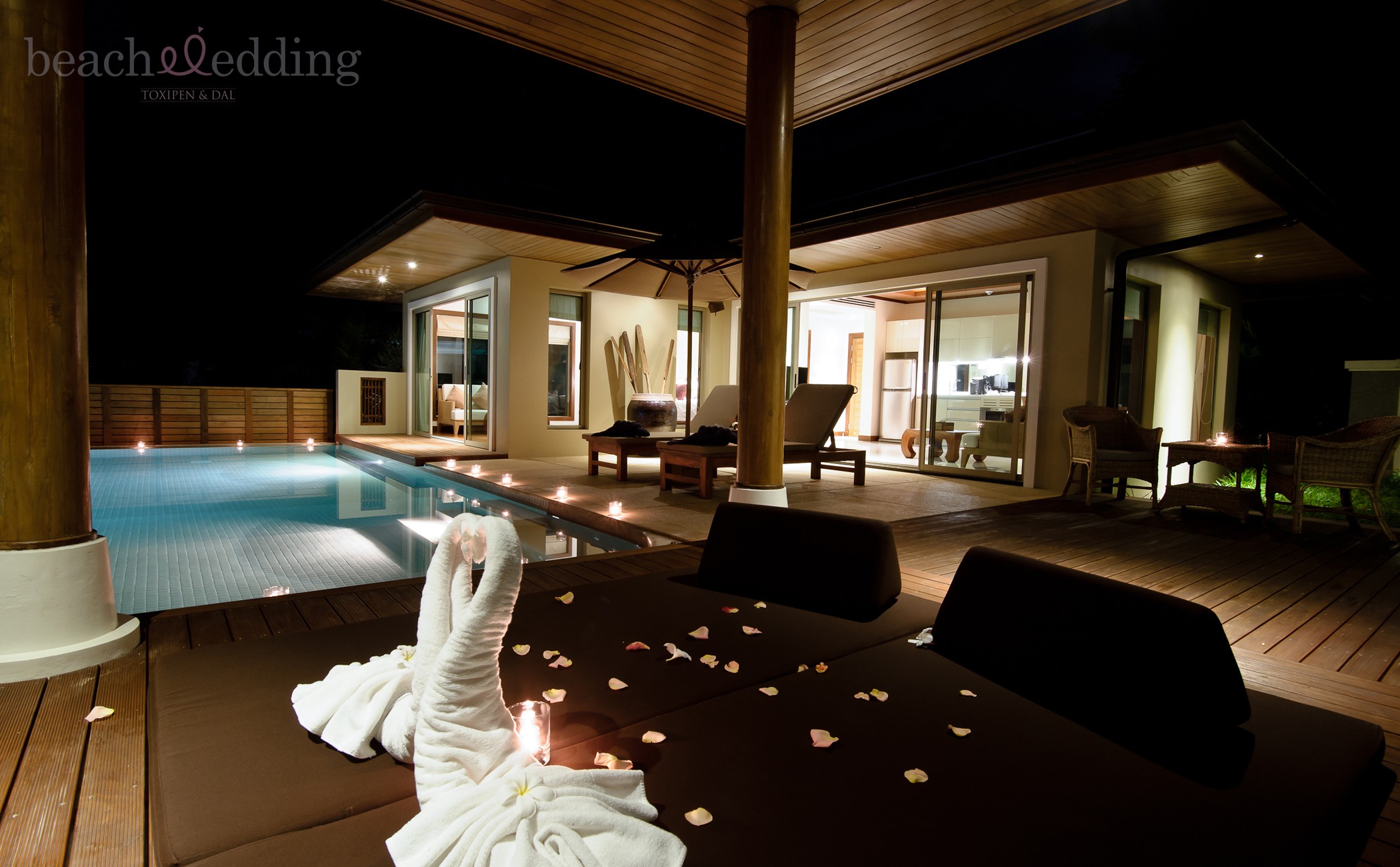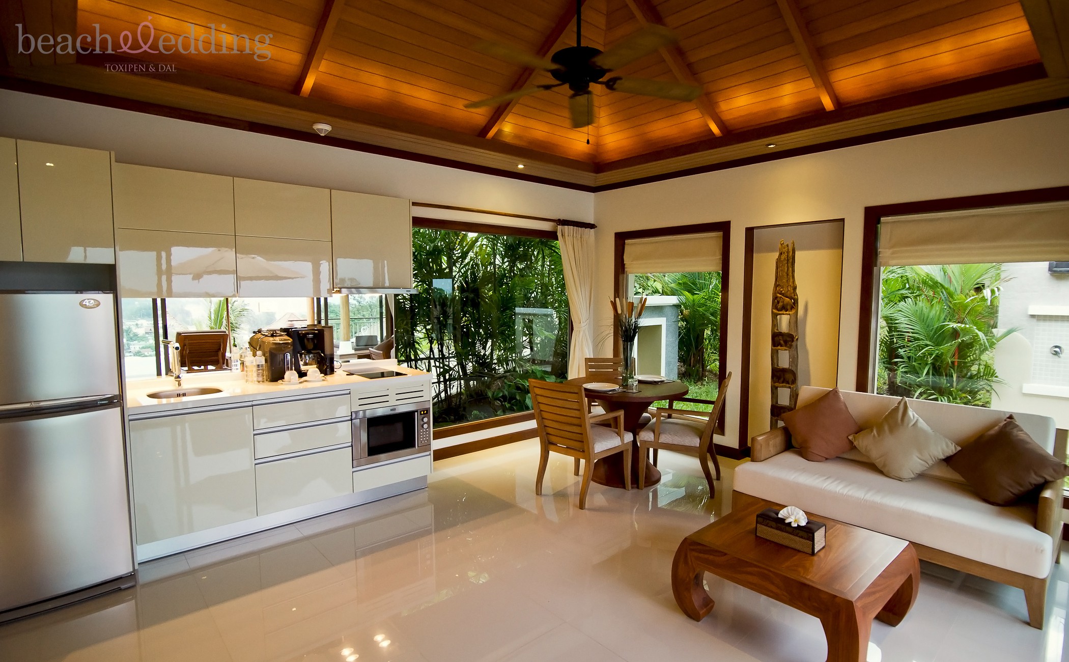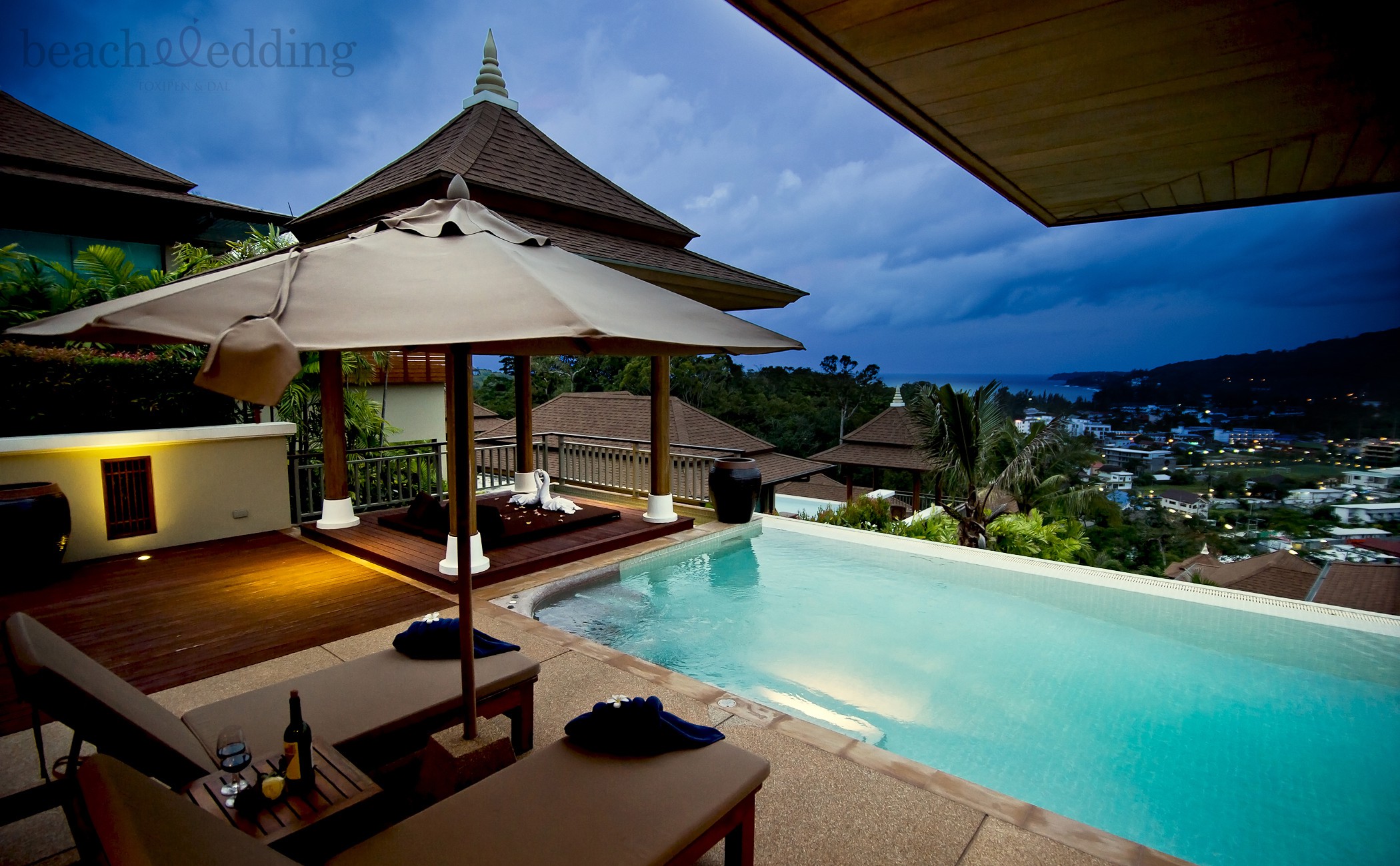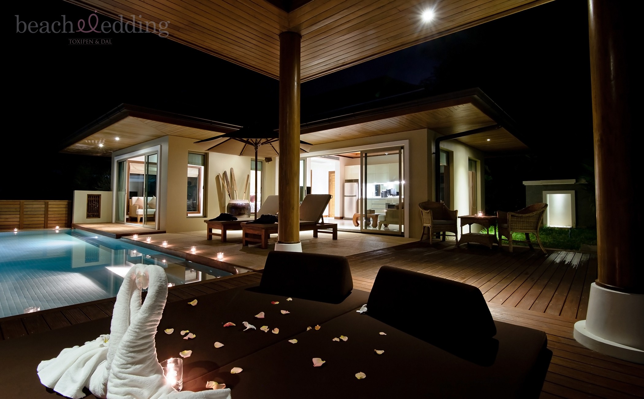 There is an outside dining area where you can enjoy a wonderful meal and a bottle of wine in the comfort and privacy of your own villa. Book a Romantic Dinner at your private Phuket Villa.