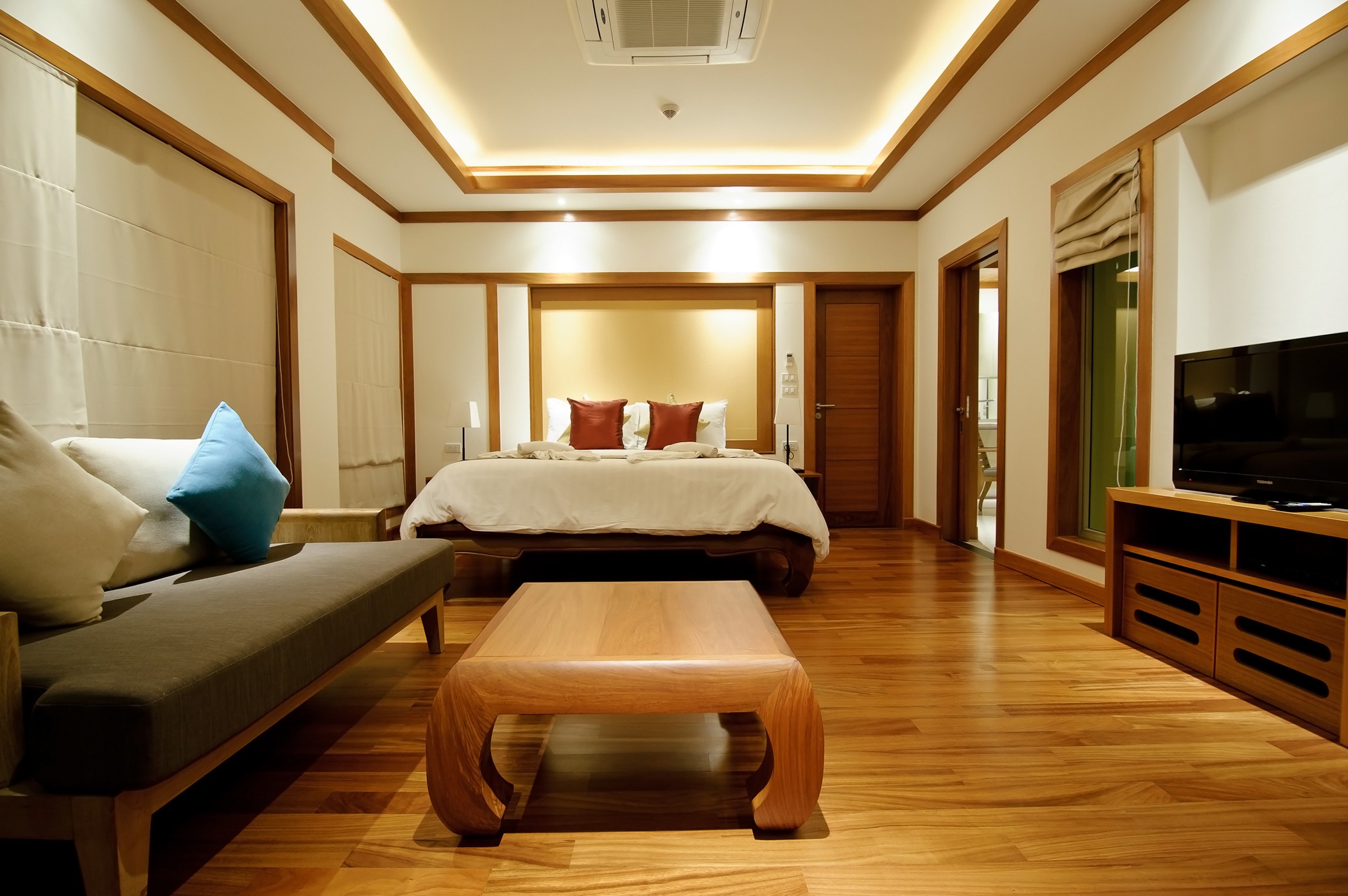 The master bedroom has a king-sized bed with en-suite facilities and opens up onto the Sala Thai (sun deck area) allowing with easy access to the infinity pool and sundeck area and is well decked out with sun lounger’s chairs and tables.