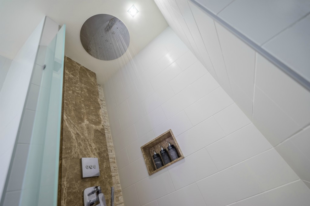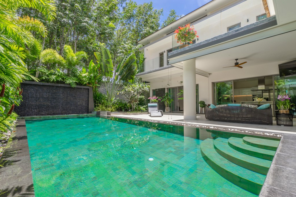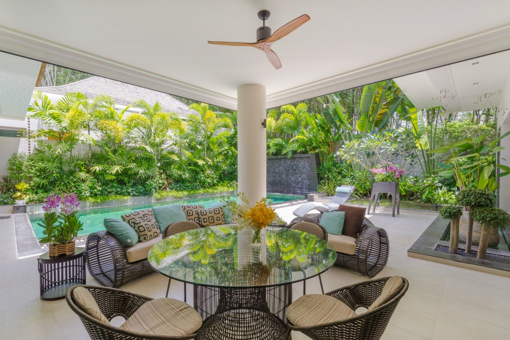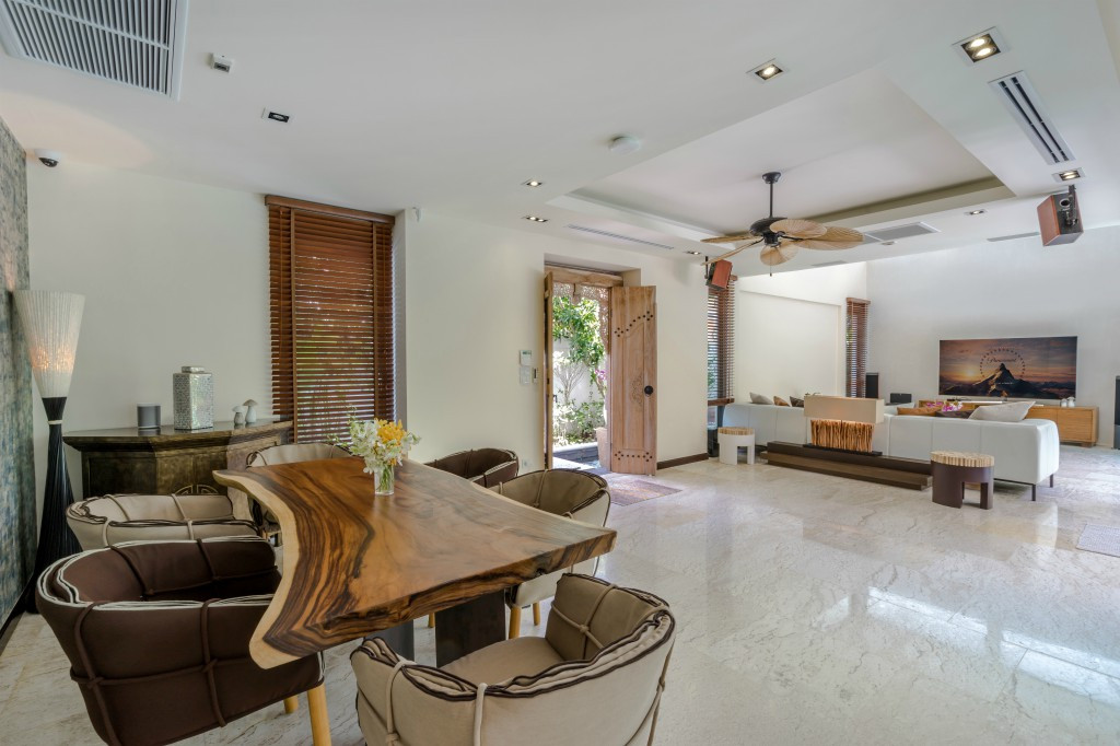 The villa comprises 2 bedrooms, all with en-suite bathrooms and rain showers. The center of the house is a gorgeous swimming pool with Jacuzzi, surrounded by patio with outdoor dining furniture, sunbeds and water fall.