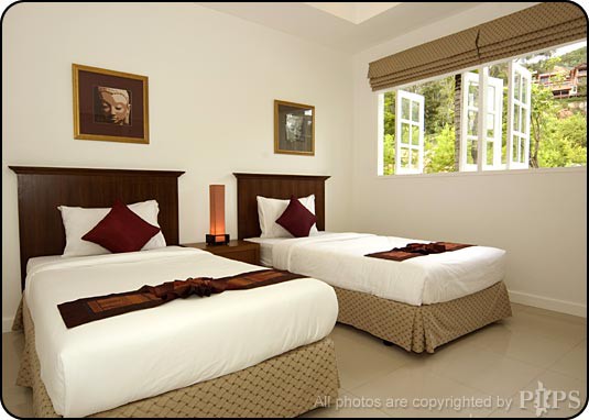Just a couple of steps further, you will reach the master and guest bedrooms where the master bedroom faces towards the swimming pool and the second bedroom is placed on the other side, giving a view of mountains beyond. The master bedroom comes with its own television and a CD/ VCD player. It is en-suite and has direct access to the veranda where a daybed seating two and dining table seating 6 are put in hand for your outdoor dining and relaxation.