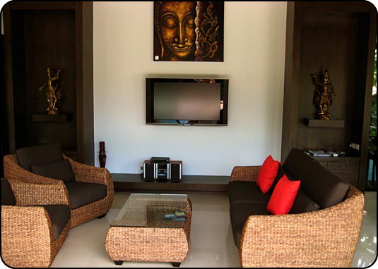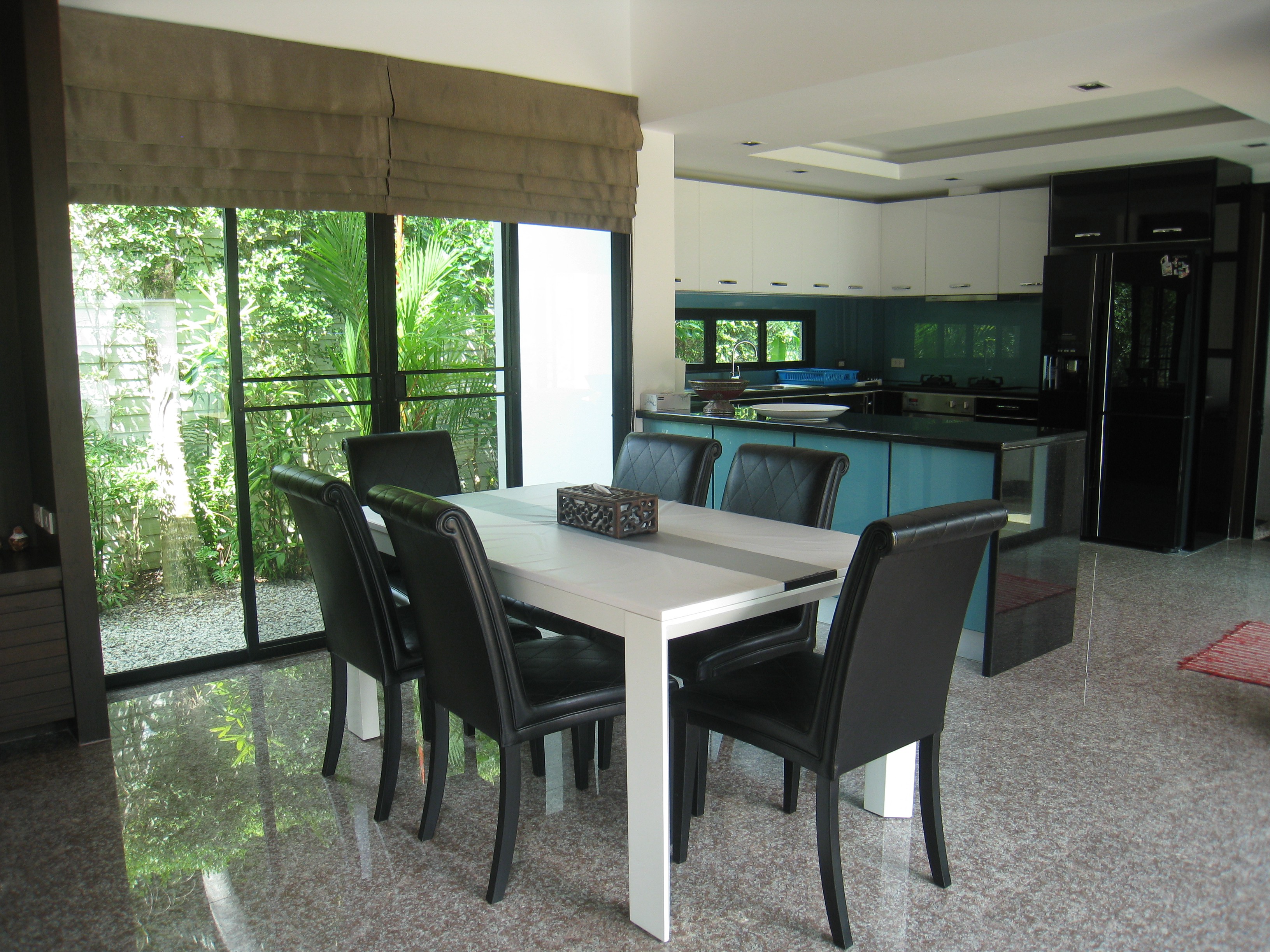 The open plan dining area leads to a fully equipped western kitchen and additional guest bathroom including a full entertainment system and internet connection.